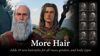 该模组提供多样化的发型,如马蹄形、园丁和剃发风格的光头发型,以及莫霍克、刀锋和炭火风格的短至中等长度发型。对于较长的发型,玩家可以选择狮子鬃、航海者、战士辫子和神秘风格。这一系列适合所有种族、性别和体型,促进了游戏中更具包容性的角色创建过程。